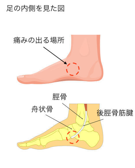 しかし、成長期のスポーツ選手では、この部分に付着する後脛骨筋腱に大きな負担がかかり、